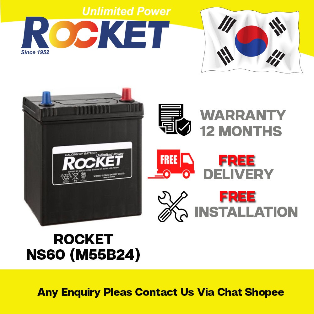 Rocket Ns60 Car Battery Bateri Kereta Waja Vios Civic Almera Iswara Hrv Accord Livina Estima Miantenance Free Bateri Shopee Malaysia